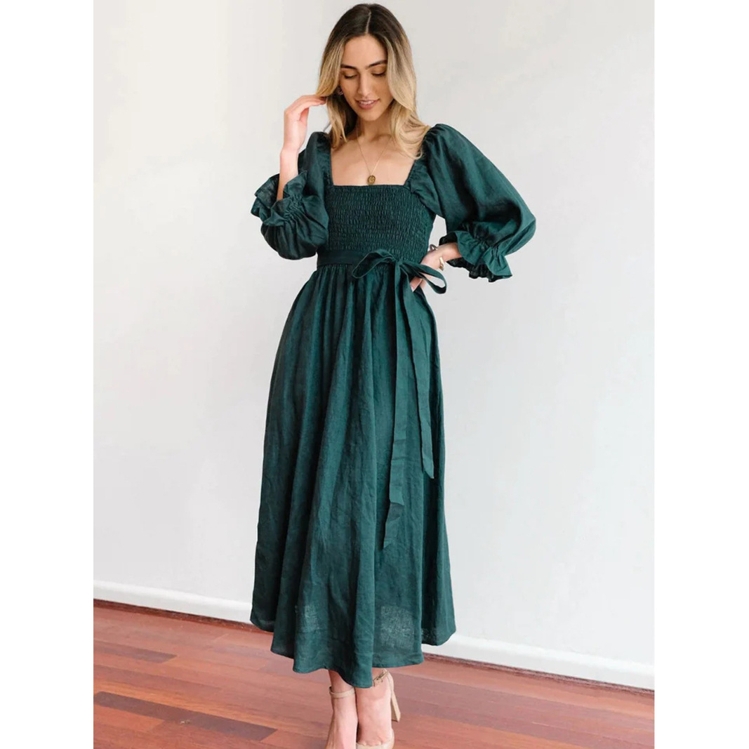 Women's Autumn Dress - Light and elegant dress for autumn days - 100% cotton - Flattering fit - Versatile style - Off-shoulder dress - Wrap dress - Half-length dress - Sophisticated - Hand wash or dry clean - Available in different colors and sizes - Simplified size chart - Perfect for beach, barbecue, day out - Online store for women's clothing and accessories - Trendy and comfortable - Airy summer dress - Chic and casual.