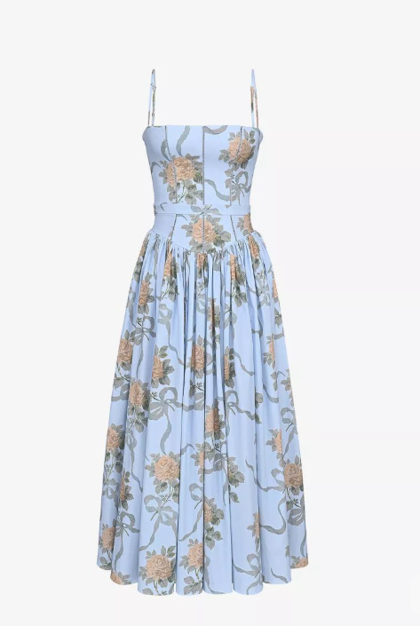 pp-Floral A Line Midi Dress Blue - Luxe Floral Dresse