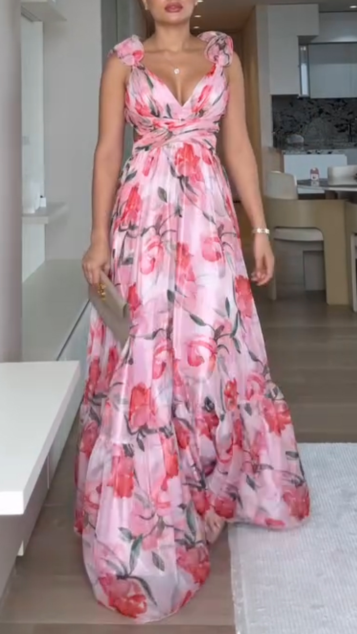The Backless Printed Maxi Dress is your effortless statement piece for sunny days and breezy evenings. With its romantic floral print, ruffled sleeves, and open lace-up back, it blends comfort with feminine charm—perfect for garden parties, vacations, or casual outings.
