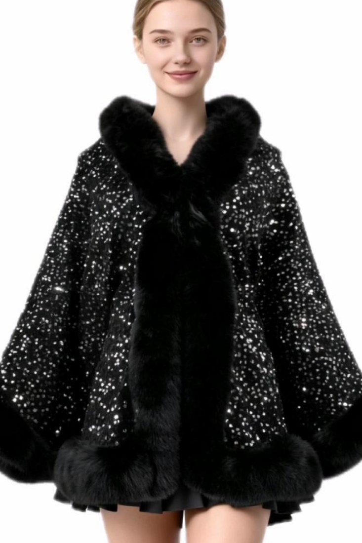 Package Included: 1 * Women's Elegant Faux Fur Sequined Shawl Wrap